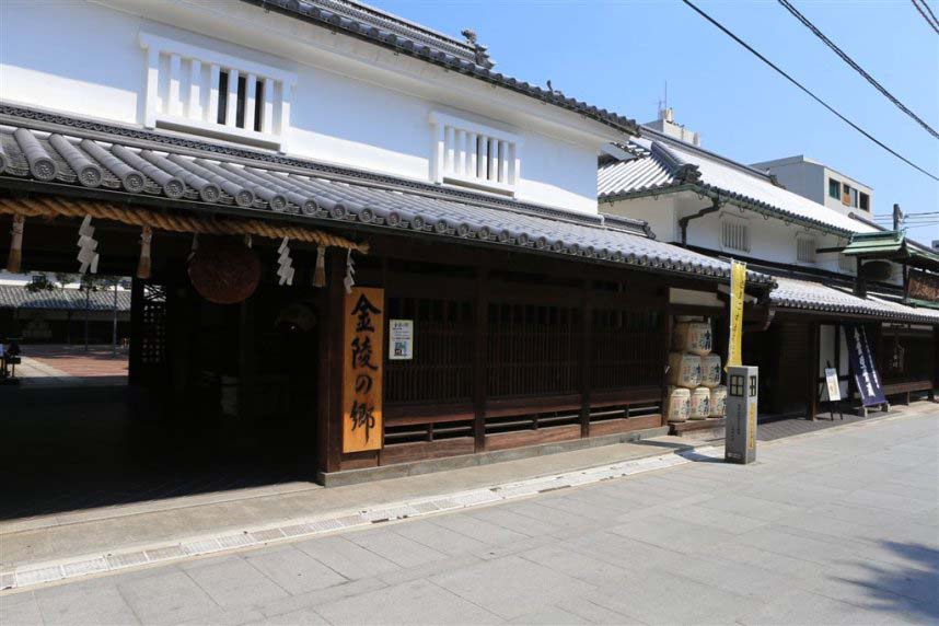 こんぴらさんの参道口にある「金陵の郷」は、寛政元(1789)年創業の白壁の酒蔵をそのまま復元した酒造りの資料館。昔ながらの酒造りの工程や歴史を、蔵人の人形や当時の道具を用いて分かりやすく紹介しています。