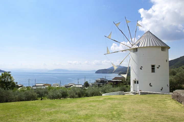 海を見下ろす小高い丘に広がる園内にはオリーブの木やハーブが植えられ、ギリシャ風の建物が建つ。テニスやハーブクラフトを楽しんだり、温泉でのんびりできる。