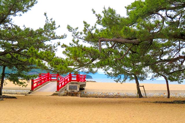 瀬戸内海に面した公園で、慶長5年(1600)頃に石清水神社の防風林として植えられた黒老松の林が約1kmにわたって続く様は見事。道の駅もある。